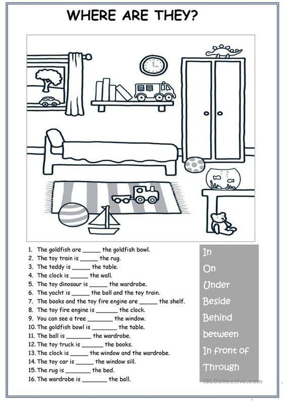 This is a sheet for younger students to practice the basic prepositions. Have them put the right preposition in the gap and then color the sheet in.
