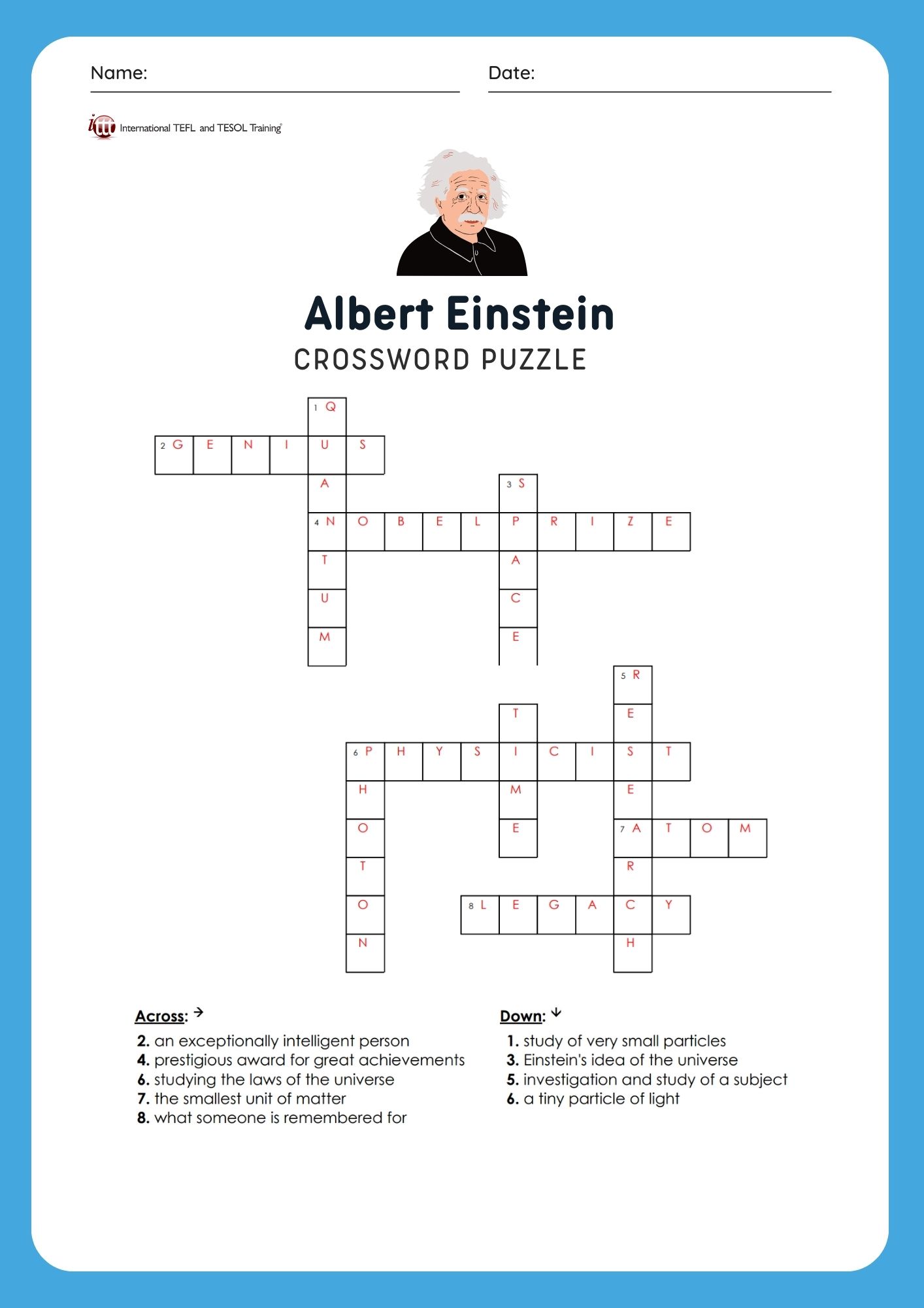 Here's a fun EFL crossword puzzle with words related to Albert Einstein.
