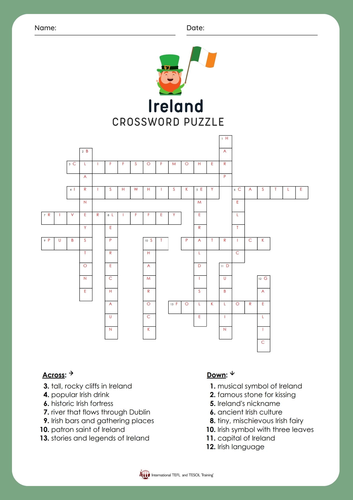 Here's a fun EFL crossword puzzle with words related to Ireland.