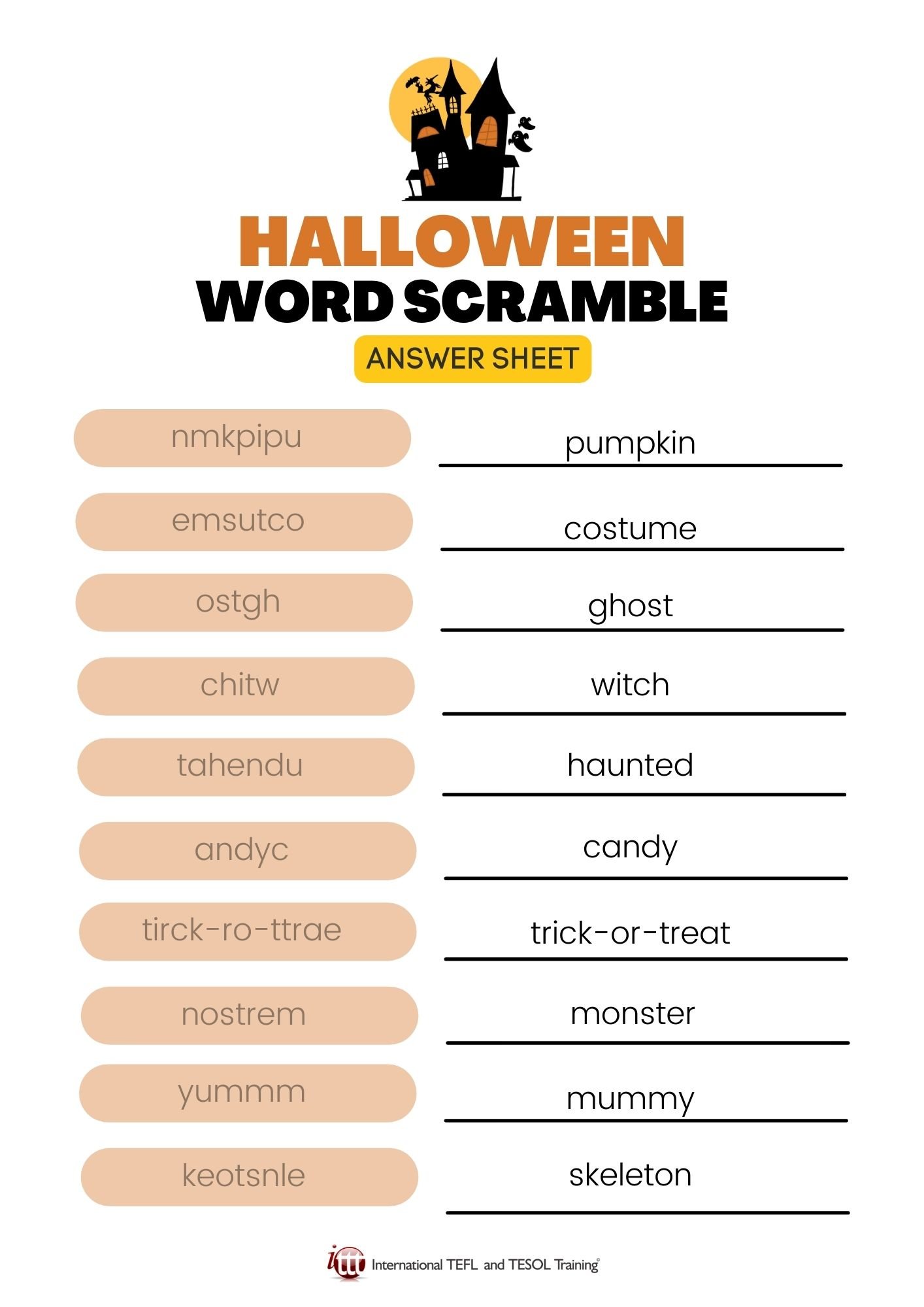 Here's a fun EFL word scramble with words related to Halloween vocabulary.